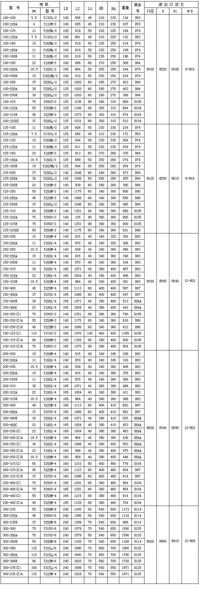 注:如使用介質為帶有細小顆粒,請在訂貨時注明,以便廠家采用耐磨式機械密封。
